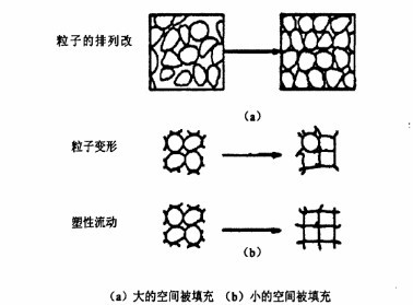 一開始粒子和粒子之間的空隙比較大,當(dāng)施加一定壓力時,粒子之間相互移動位置發(fā)生改變,一部分粒子受到擠壓填入到粒子之間的空隙內(nèi)。當(dāng)粒子間的空隙被填滿后,別的粒子就很難再進來了。要去填充周圍的空隙,只有經(jīng)過再增加壓力靠粒子本身的變形,當(dāng)兩個相鄰的粒子相互擠壓延展的時候,繼續(xù)增大壓力,粒子與粒子受到擠壓纖維粘結(jié)后就會相互結(jié)合,體積大幅度減小,密度顯著增大,原本分散的粒子就被致密成型了,一般不能再恢復(fù)原來粒子的結(jié)構(gòu)形狀。
