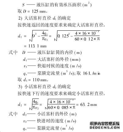 2、快速運(yùn)動(dòng)缸主要尺寸的確定