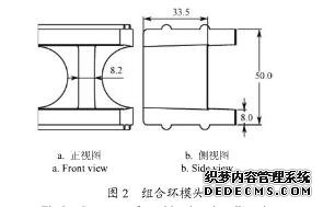該型環(huán)模各組合單元包括環(huán)模模頭合模具基體,組合環(huán)模頭為主要工作部件,其設(shè)計要求高于模具基體。為便于喂料,模具?椎慕Y(jié)構(gòu)形式為內(nèi)方外圓,結(jié)構(gòu)如圖2所示。