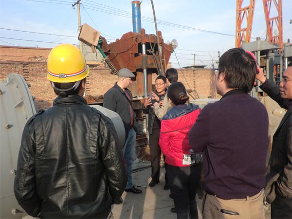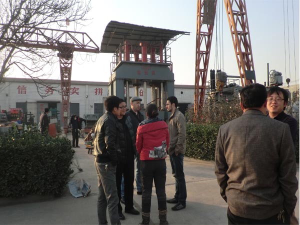 俄羅斯客戶考察舔鹽壓塊機(jī)現(xiàn)場