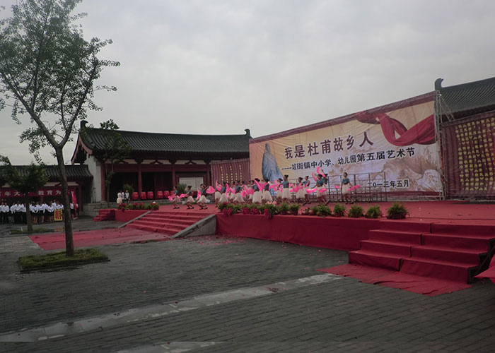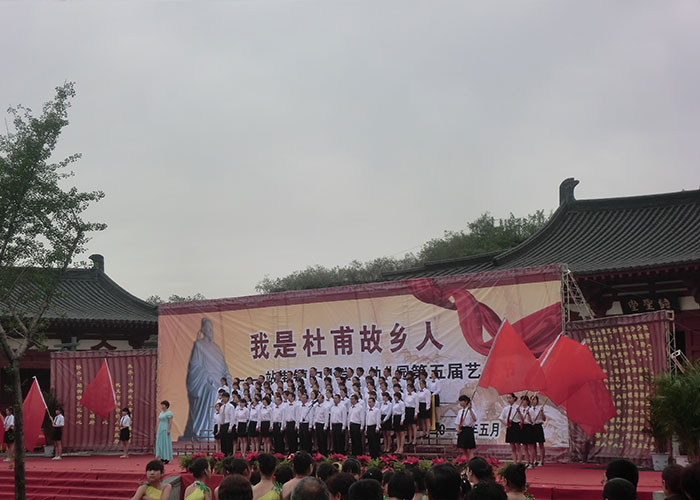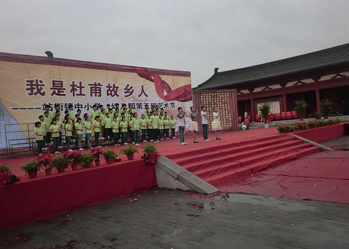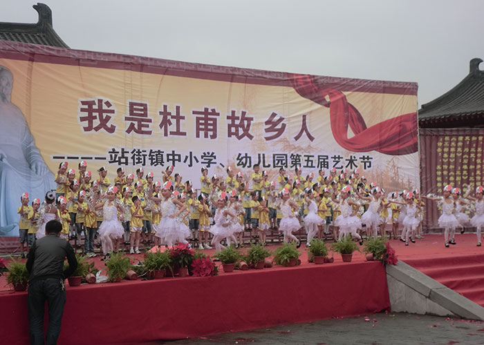此次活動是由鞏義市站街鎮(zhèn)政府主辦、站街鎮(zhèn)教研中心和杜甫故里管理所承辦的。鞏義市委宣傳部、文廣新局、教體局、文明辦、站街鎮(zhèn)政府相關(guān)領(lǐng)導(dǎo)、河南省銘澤機械制造有限公司領(lǐng)導(dǎo)和員工以及站街鎮(zhèn)中小學(xué)、幼兒園全體師生及各界群眾約3000人參加了此次演出活動。